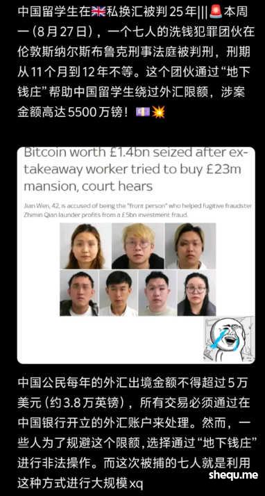 英区留子洗钱大瓜 洗了5亿 判了25年